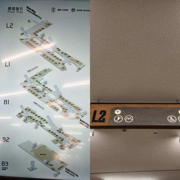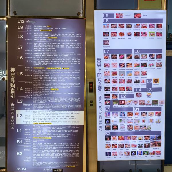 中山公园龙之梦的直达电梯前,有两张巨大的导购图,分别介绍了各个楼层的零售和餐饮商家,却找不到厕所、母婴室等服务设施信息。在各个楼层中寻觅,能看到厕所和安全通道标志,却没有“无障碍”标志。