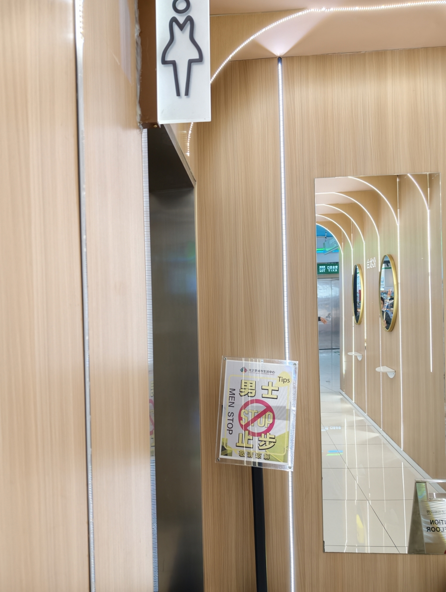 中山公园龙之梦的无障碍厕所就在这个标注着“男士止步”的“化妆间”里